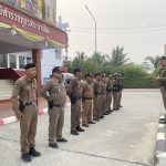 พ.ต.อ.ธารา ศรีพรหมคำ ผกก.สภ.สระยายโสม พ.ต.ท.สุรศักดิ์ เรืองวิทย์ รอง ผกก.ป.สภ.สระยายโสม พ.ต.ท. เวิน ขันตี สวป.สภ.สระยายโสม ร.ต.อ.เชาวน์ศักดิ์ ทองกองเตีย ปฏิบัติหน้าที่ร้อยเวร 20 เรียกแถวสายตรวจผลัด ใหม่-เก่า เคารพธงชาติ กล่าวอุดมคติตำรวจ ราชสวัสดิ์ 10 ประการ ชี้แจงข้อราชการ กำัชการปฏิบัติตามโยบายการต่อต้านการรับสินบน (Anti- Bribery Policy) ไปปฏิบัติ และประกาศไม่รับของขวัญและของกำนัลทุกชนิด (No Gift Policy) จากการปฏิบัติหน้าที่ โดยให้ปฏิบัติโดยเคร่งครัด