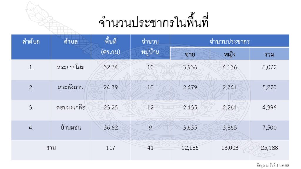 จำนวนประชากรในพื้นที่